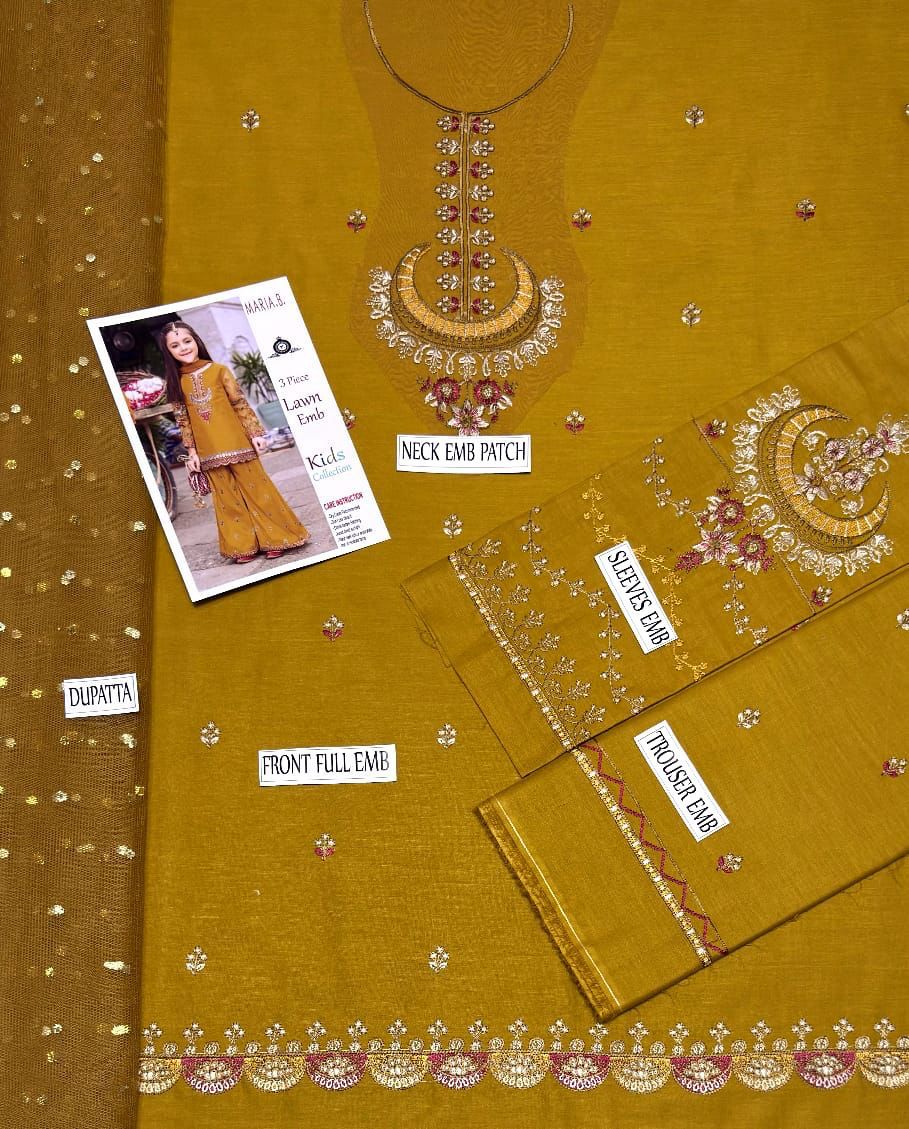 Let your little one shine in this elegant Kids Lawn Embroidered 3-Piece Suit, designed with comfort, style, and vibrant summer vibes. Crafted from premium lawn fabric, this outfit features delicate embroidery details and a cheerful color palette—perfect for everyday wear and special occasions alike.