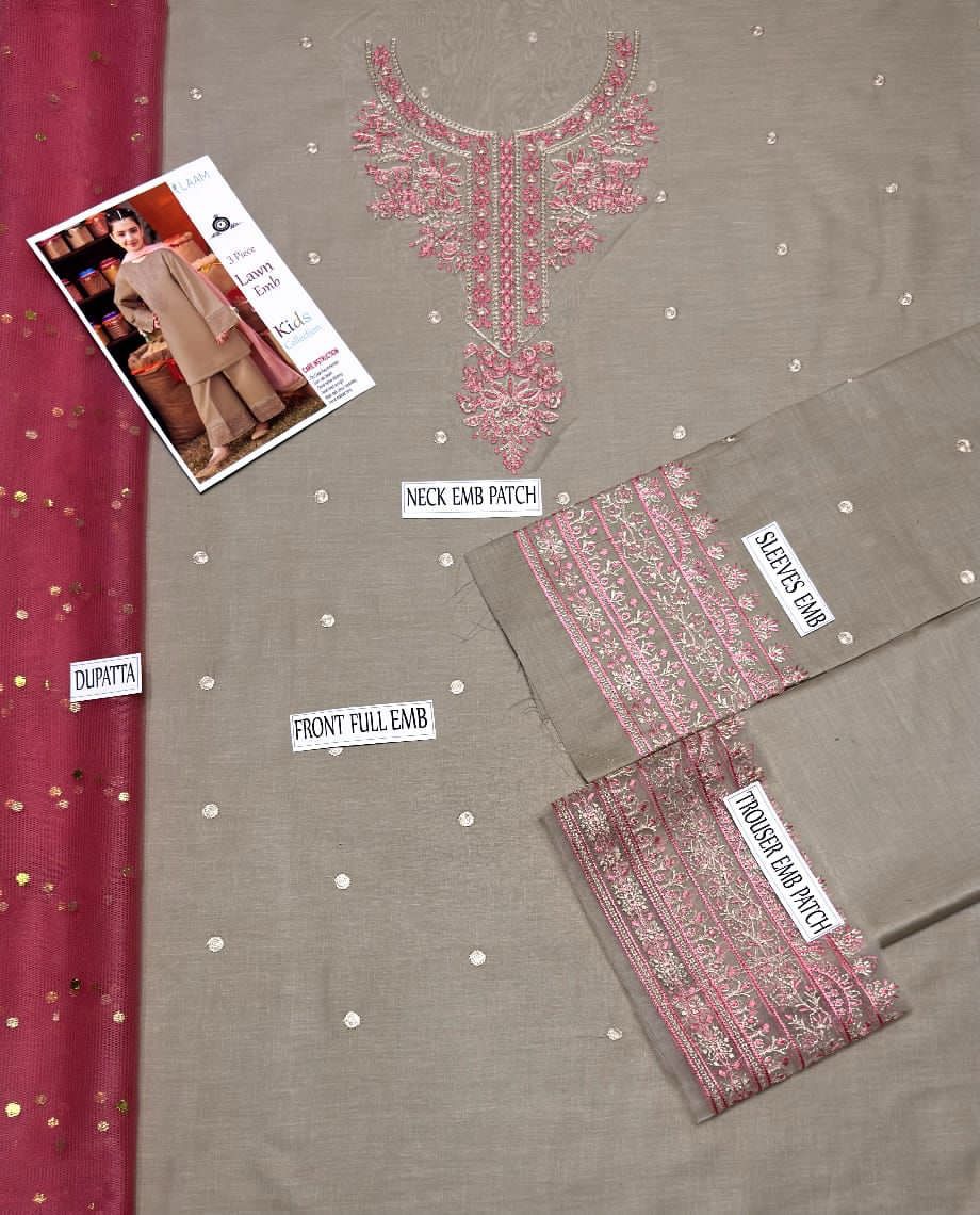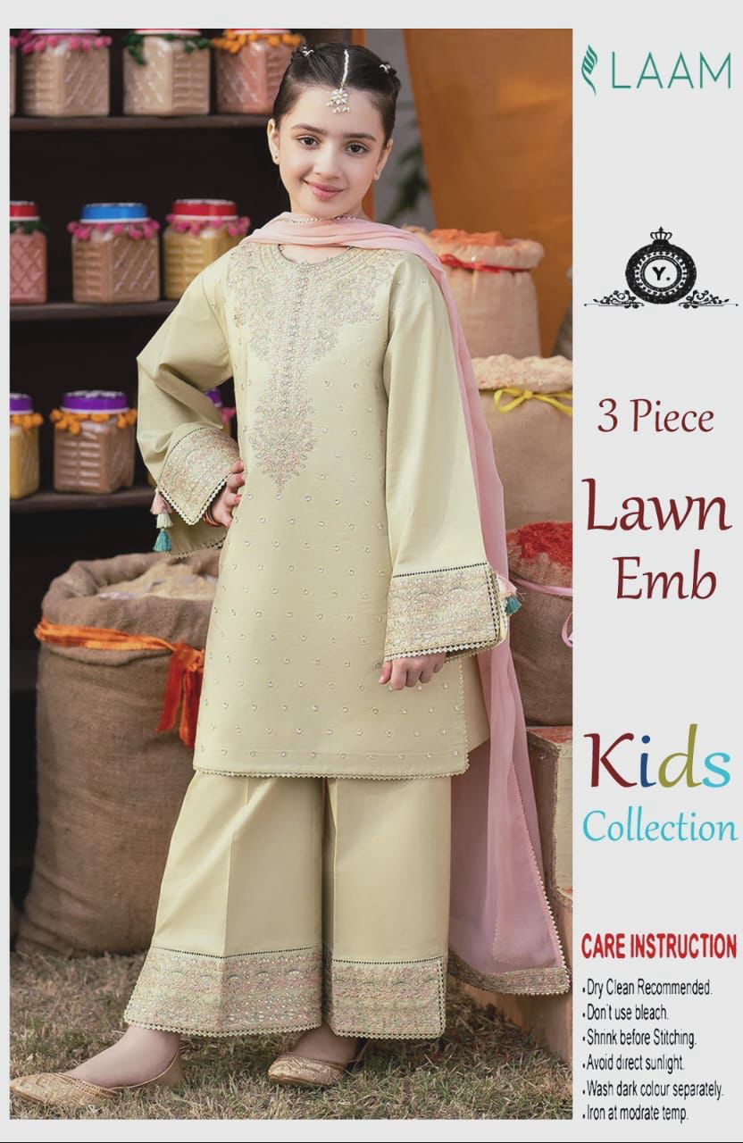 Let your little one shine in this elegant Kids Lawn Embroidered 3-Piece Suit, designed with comfort, style, and vibrant summer vibes. Crafted from premium lawn fabric, this outfit features delicate embroidery details and a cheerful color palette—perfect for everyday wear and special occasions alike.