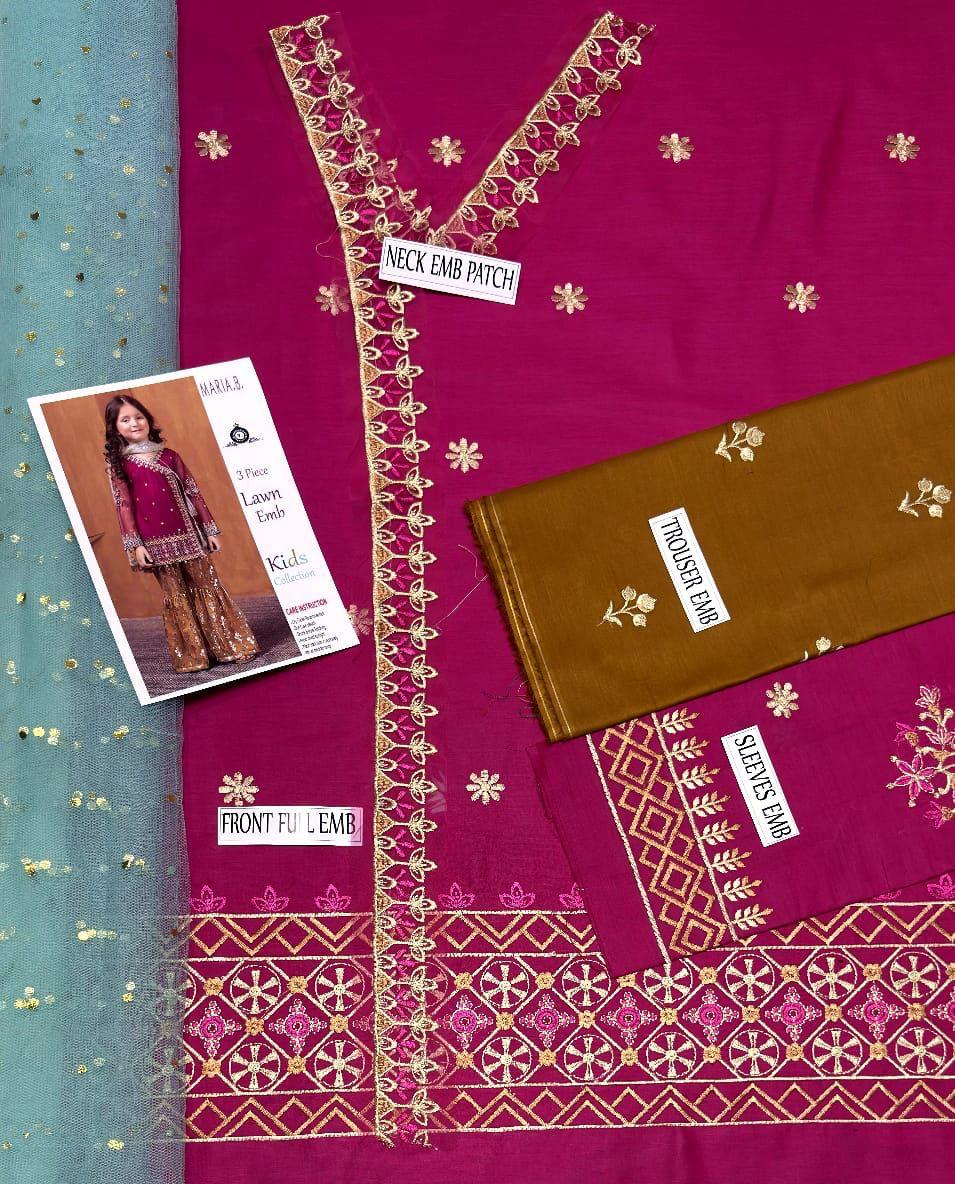Let your little one shine in this elegant Kids Lawn Embroidered 3-Piece Suit, designed with comfort, style, and vibrant summer vibes. Crafted from premium lawn fabric, this outfit features delicate embroidery details and a cheerful color palette—perfect for everyday wear and special occasions alike.